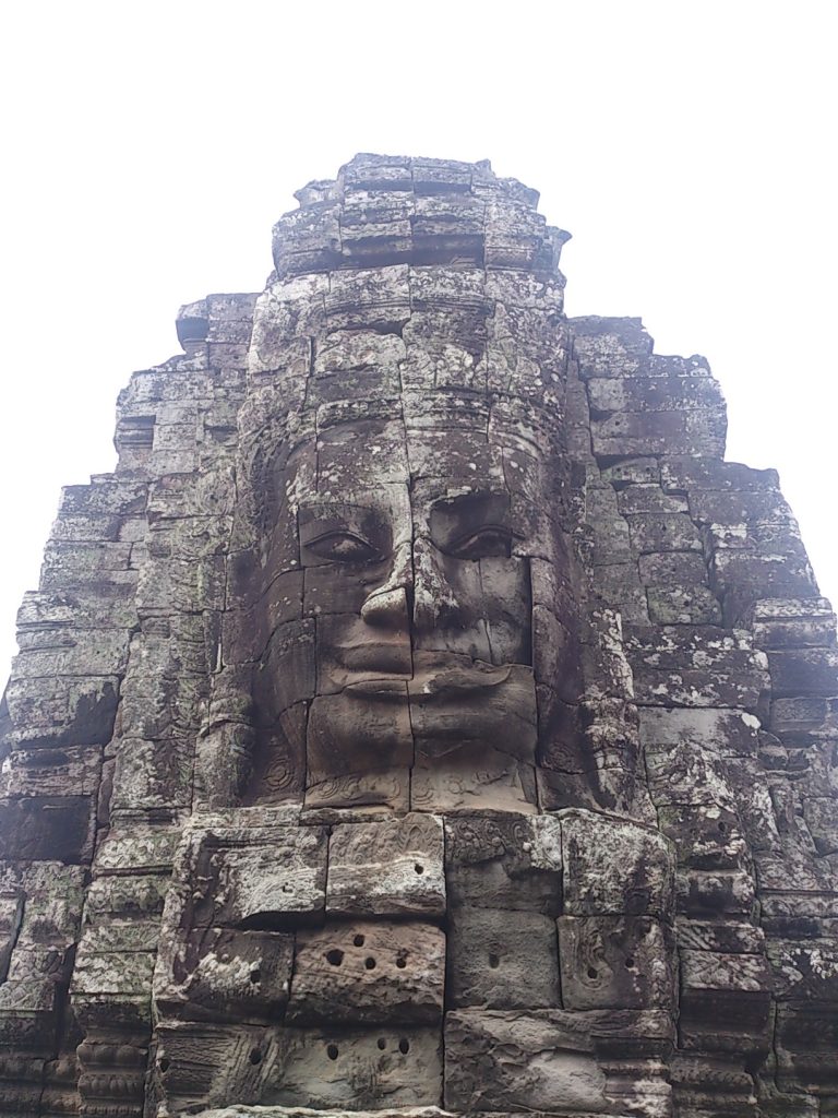而大吳哥(大吳哥城, Angkor Tom)為國王闍耶跋摩七世所建,因其篤信佛教,吳哥地區信仰開始由印度教轉變為上部座佛教,故大吳哥的建築中同時有著印度教與佛教元素,城中心的巴戎寺是吳哥王朝的最後一個國寺,就是最著名的以國王面容為藍本雕刻54座微笑四面佛佛塔,也是「微笑高棉」名稱的由來。