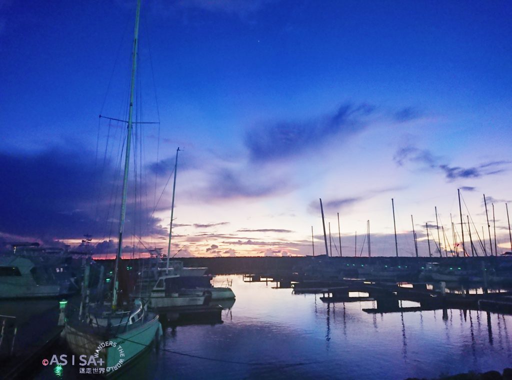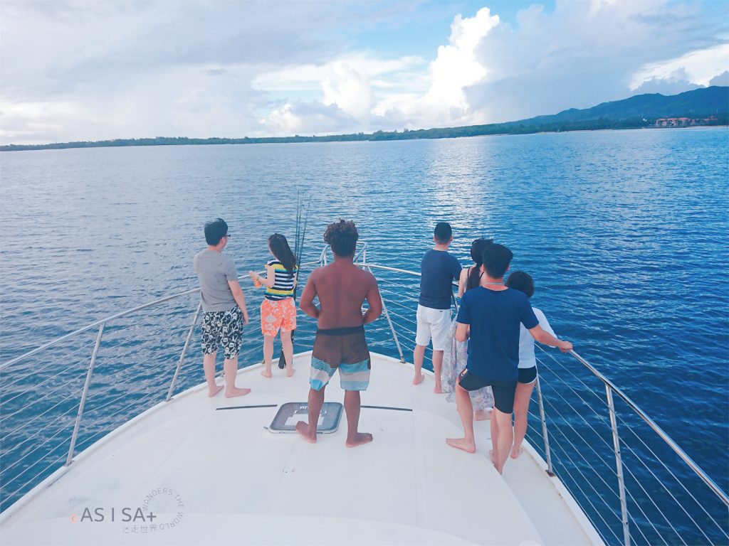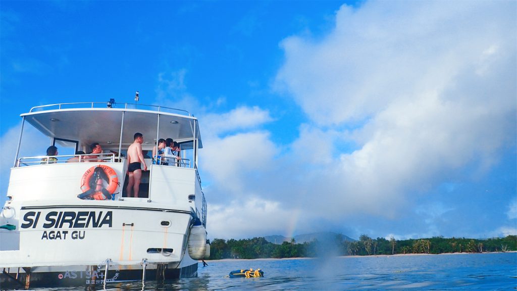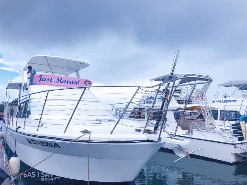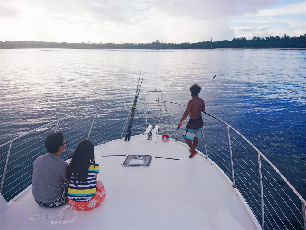 活動包含飯店接駁,從飯店到Agat Marina碼頭車程約半小時,抵達碼頭準備登船出發囉! 親切幽默船長很健談,聊天時船長說我的名字「Isa」在查莫洛語是「彩虹」的意思,繼菲律賓語「Isa=NO.1」,又學了一個意思。