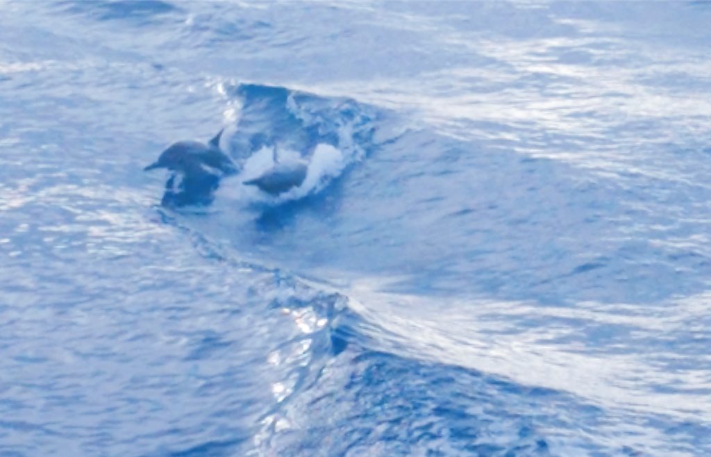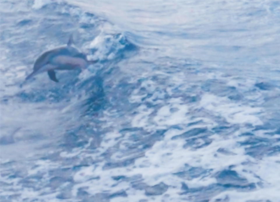 出海最重要的當然是找海豚玩,找野生海豚除了看人品,就真的要靠船長的實力了,喜歡台灣卡拉OK的船長不只健談,找海豚也挺厲害,出海約半小時,成群的海豚們出現了,船長會快速地繞圈開,製造浪頭,果然愛玩的海豚們上鉤了,玩得不亦樂乎,逐浪、海豚跳各種花式遊玩,根本海洋公園表演秀啊,好想下海一起玩喔….
