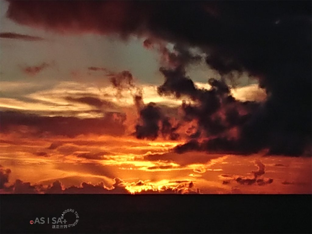 歸程的短暫午後雷雨後,享受著絕美的絢麗海上晚霞伴著我們踏上歸途。