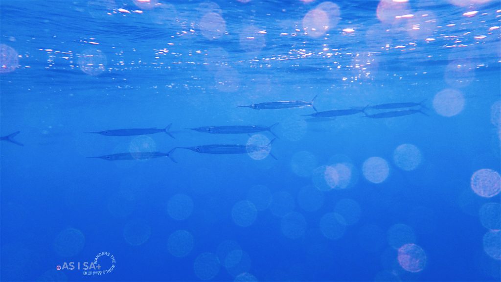 玩了半個多小時浮潛,看到的魚群不算多,但看到彩虹了~