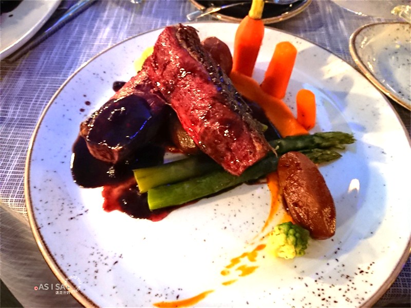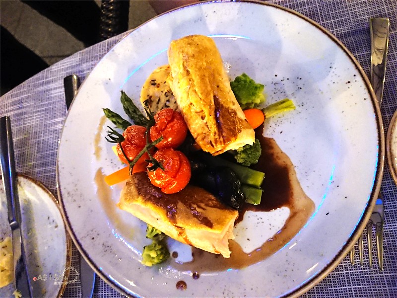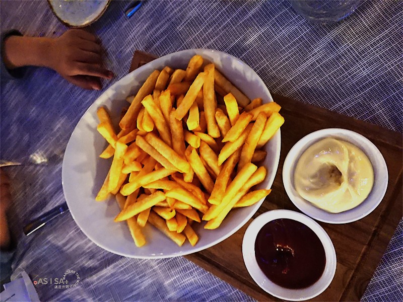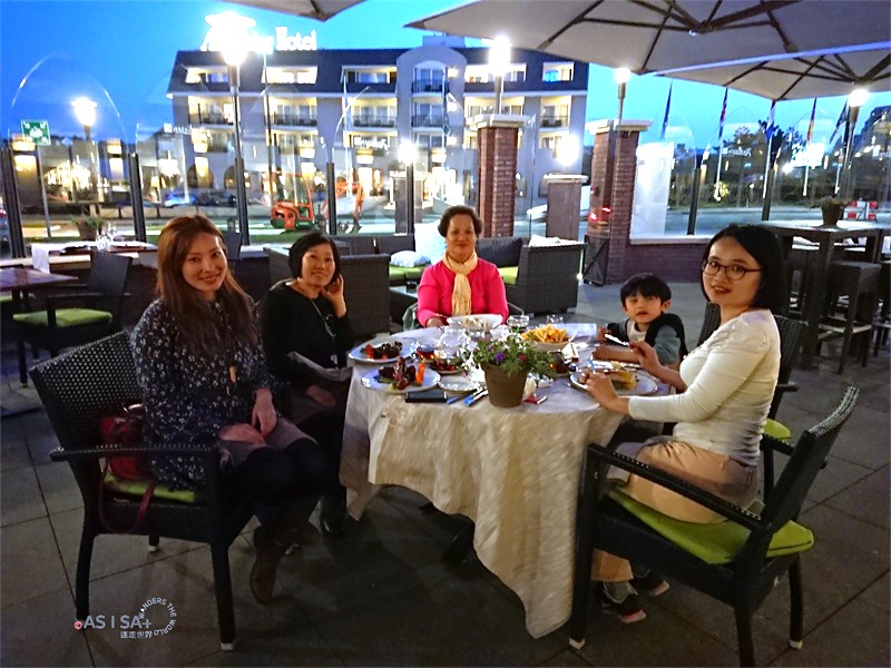 經過一天的奔波,抵達的第一晚我們就近在飯店的一樓的circles餐廳晚餐,微涼的天氣,在戶外區用餐還挺舒服的。兒童餐、薯條、鴨胸、鱈魚、烤肋眼牛、玉米雞柳條共100歐元。
