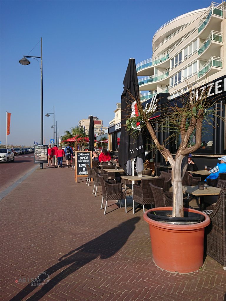 參觀庫肯霍夫公園, 若是要住宿應該會就近住在Lisse,但我們因為要看遊行&配合航班緣故,所以選擇了遊行路線首個經過的Noordwijk做為住宿點。海濱諾德偉克(Noordwijk aan Zee)原本是一個漁村﹐約建於1200年,19世紀初這裡仍是以漁業為主,後來觀光旅遊逐漸發展,有著優質漫長沙灘的海濱已成為受歡迎的度假之地。這區有很多的飯店、餐廳與商店,步行就可到海濱,吃飯、逛街、觀光都很方便,很適合度假的景點。