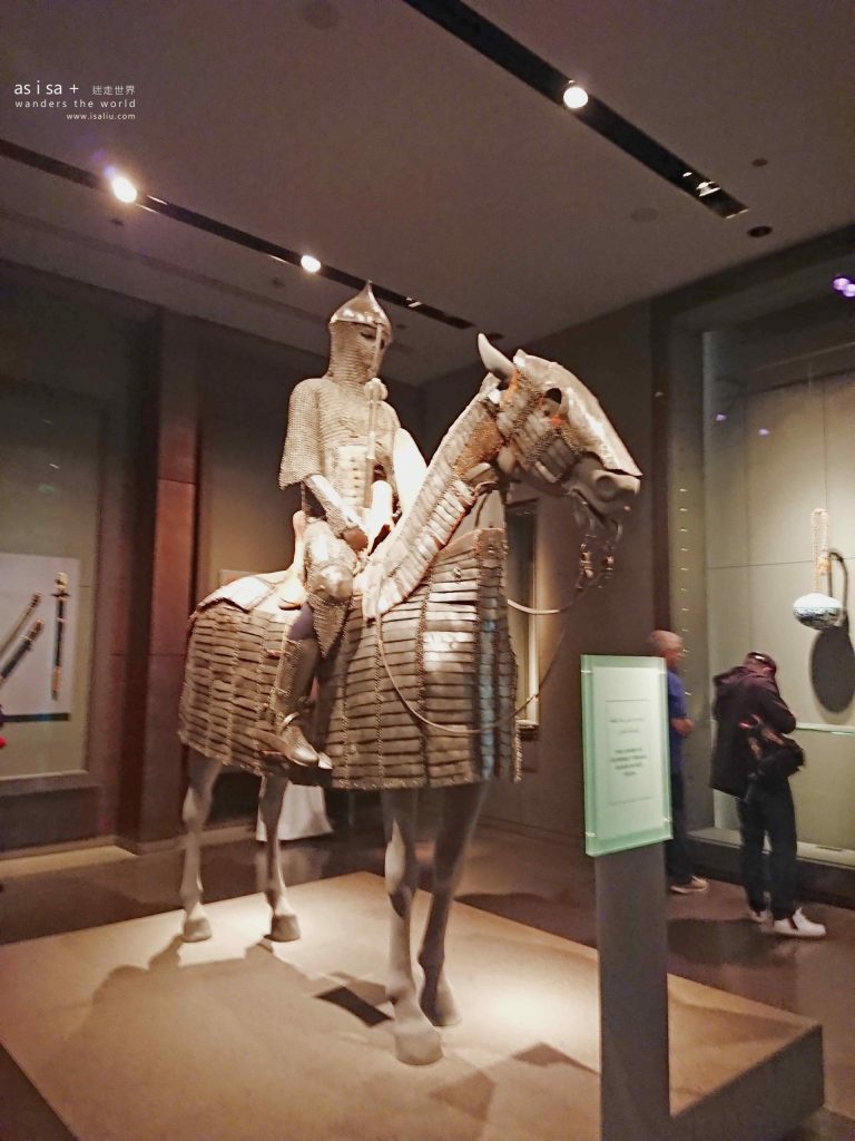 鍛造和錘擊鐵合金,皮革和紡織品,展現當時高超的冶金公藝,盔甲表面雕飾了伊斯蘭花紋與文字,完整地覆蓋了騎士與戰馬,重量厚實也兼具華麗。