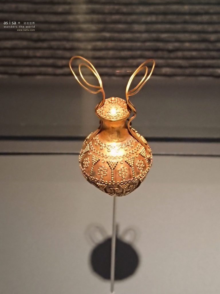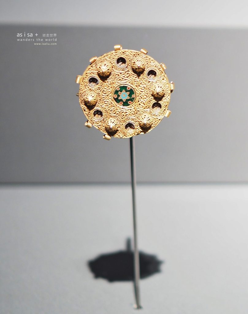 早期伊斯蘭奢侈品,以大膽的幾何圖案裝飾、小金珠點綴技術,排列成帶有小金環的設計,可能是公元 11 或 12 世紀在敘利亞法蒂瑪或伊朗塞爾柱製造的。