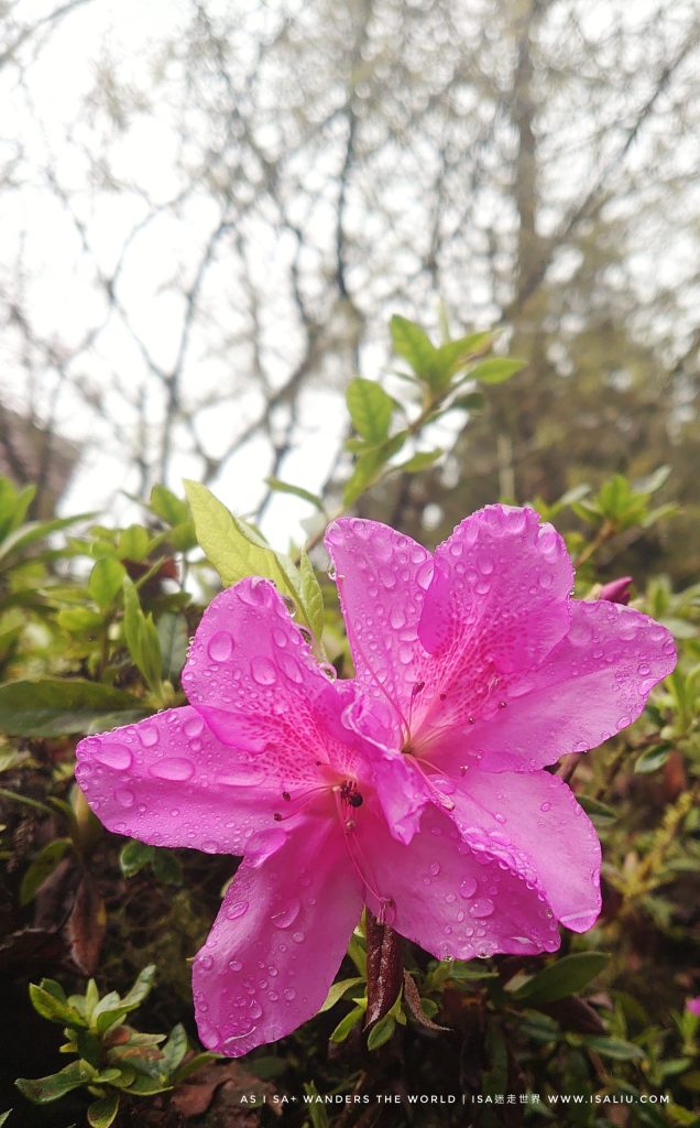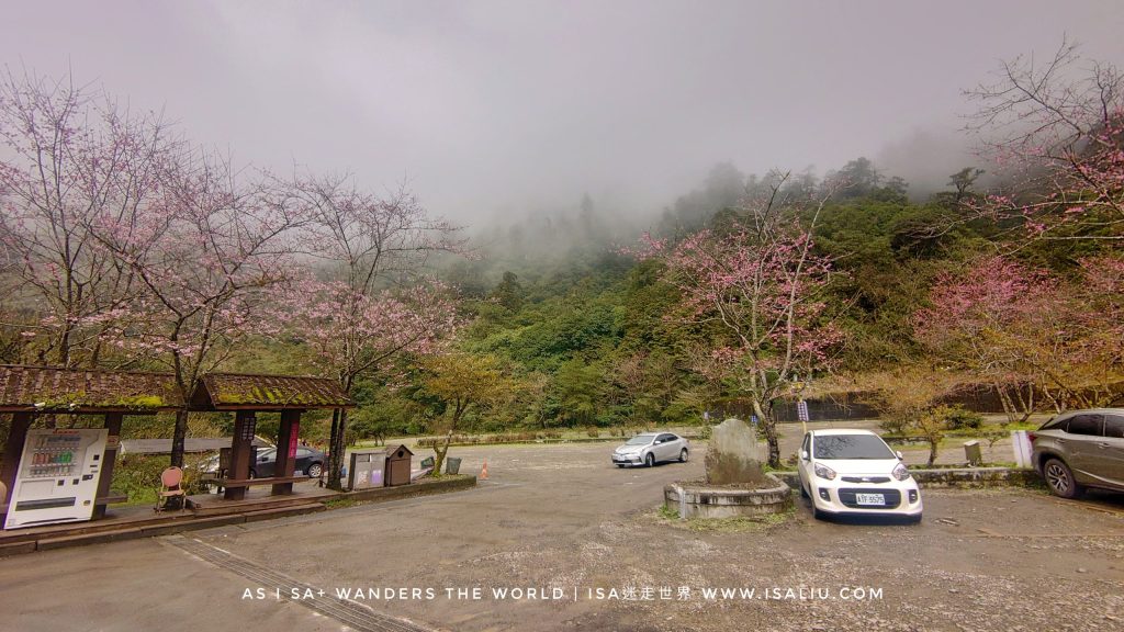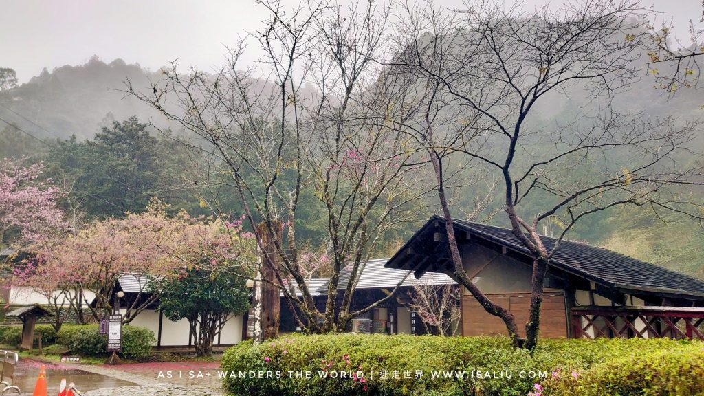 餐廳的外側新蓋了一個木造的玻璃屋餐廳,玻璃窗外是一處木造桌椅的戶外品茶區,適逢戶外區的櫻花開花,早餐剛好在這一角落用餐,賞著美景吃飯就是愉悅。看了下山莊裡也種植了不少櫻花樹,可惜花期已過,只餘零散幾株枝頭上可見一些粉色身影。